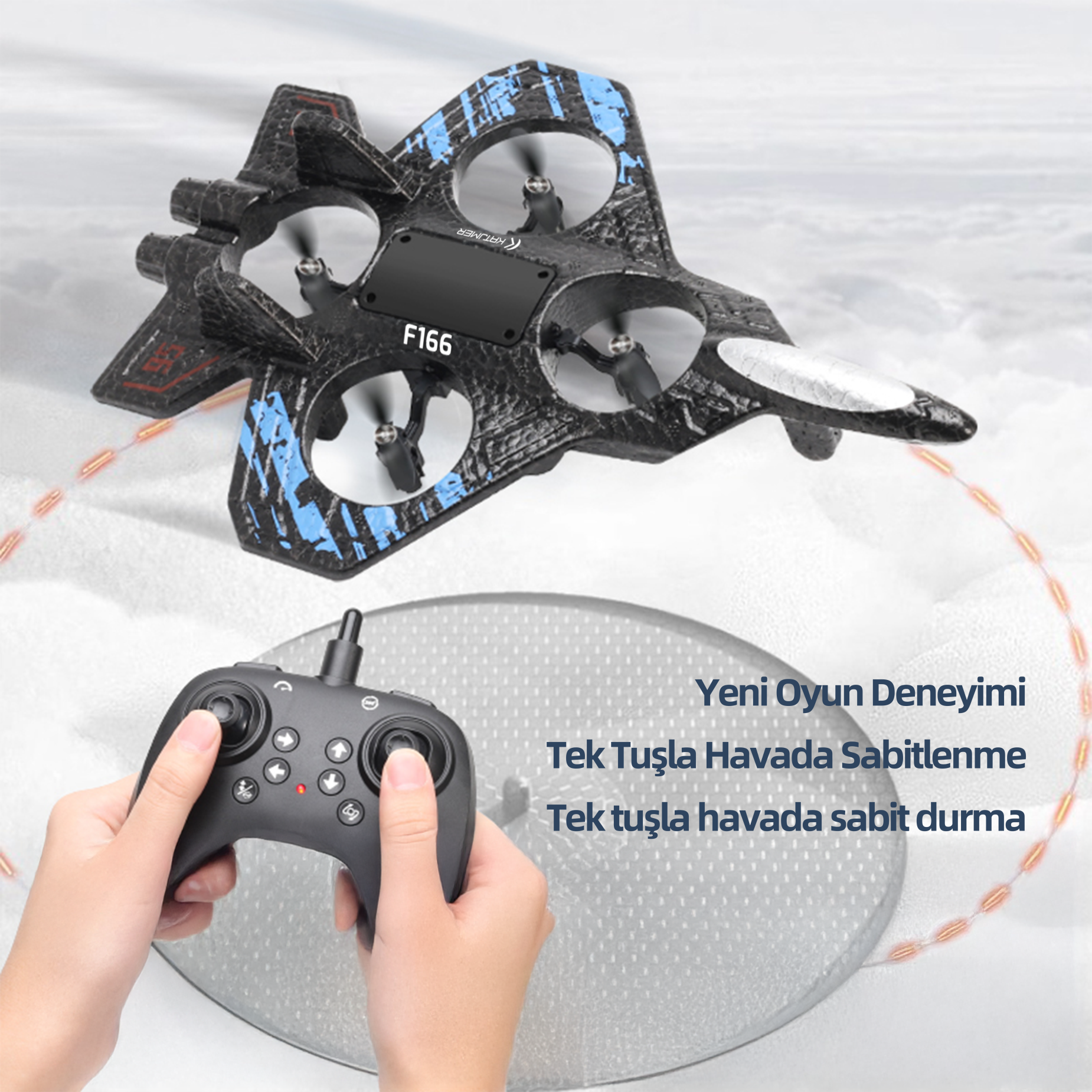 F166 model bu uzaktan kumandalı hava aracı, kullanıcı dostu yapısı ve kompakt tasarımıyla hem hobi amaçlı kullanım hem de günlük eğlence için ideal bir seçenektir. Hafif ve dayanıklı gövdesi sayesinde taşıması kolaydır ve farklı ortamlarda güvenli bir deneyim sunar.