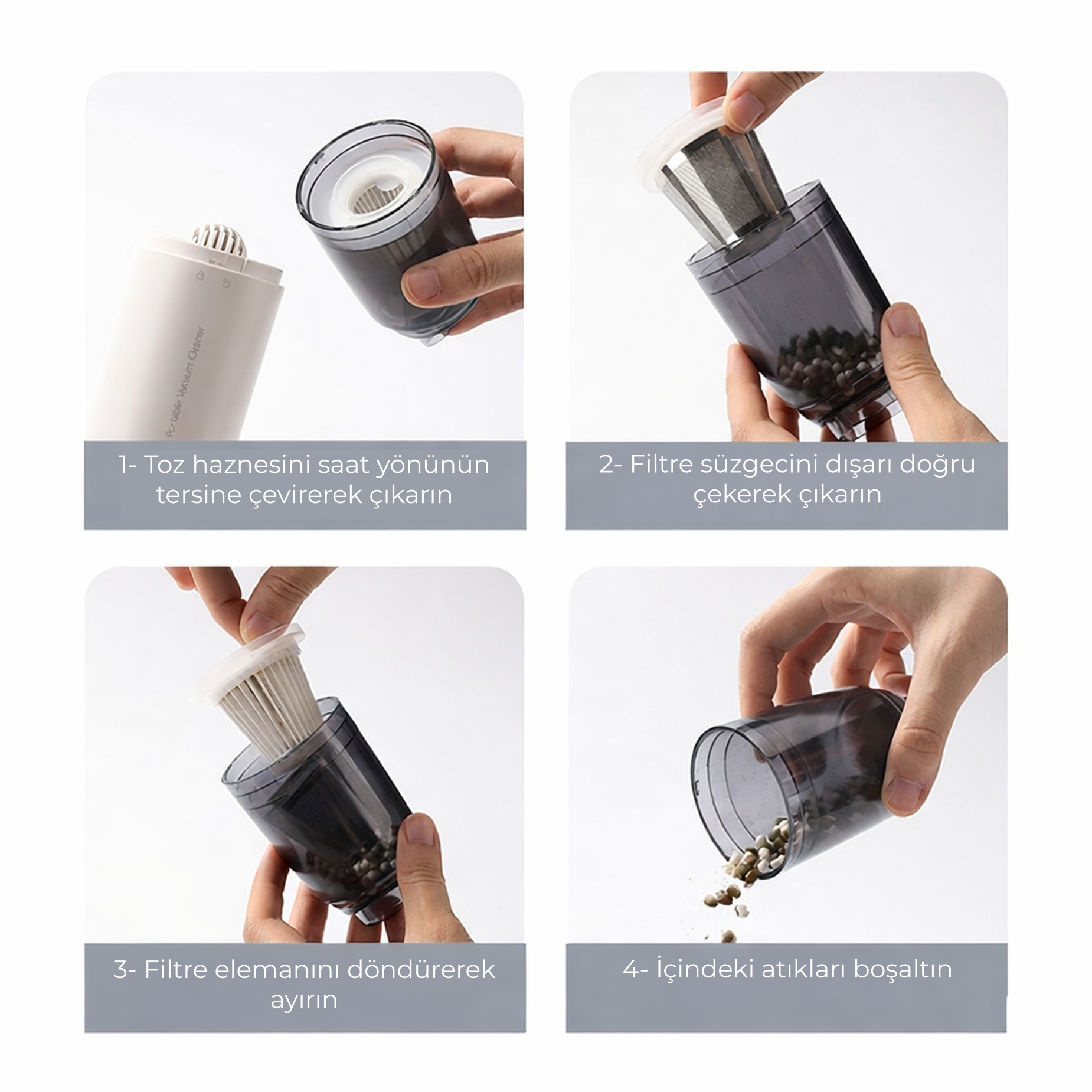 Yıkanabilir filtre ve kolay temizlenebilir hazne
