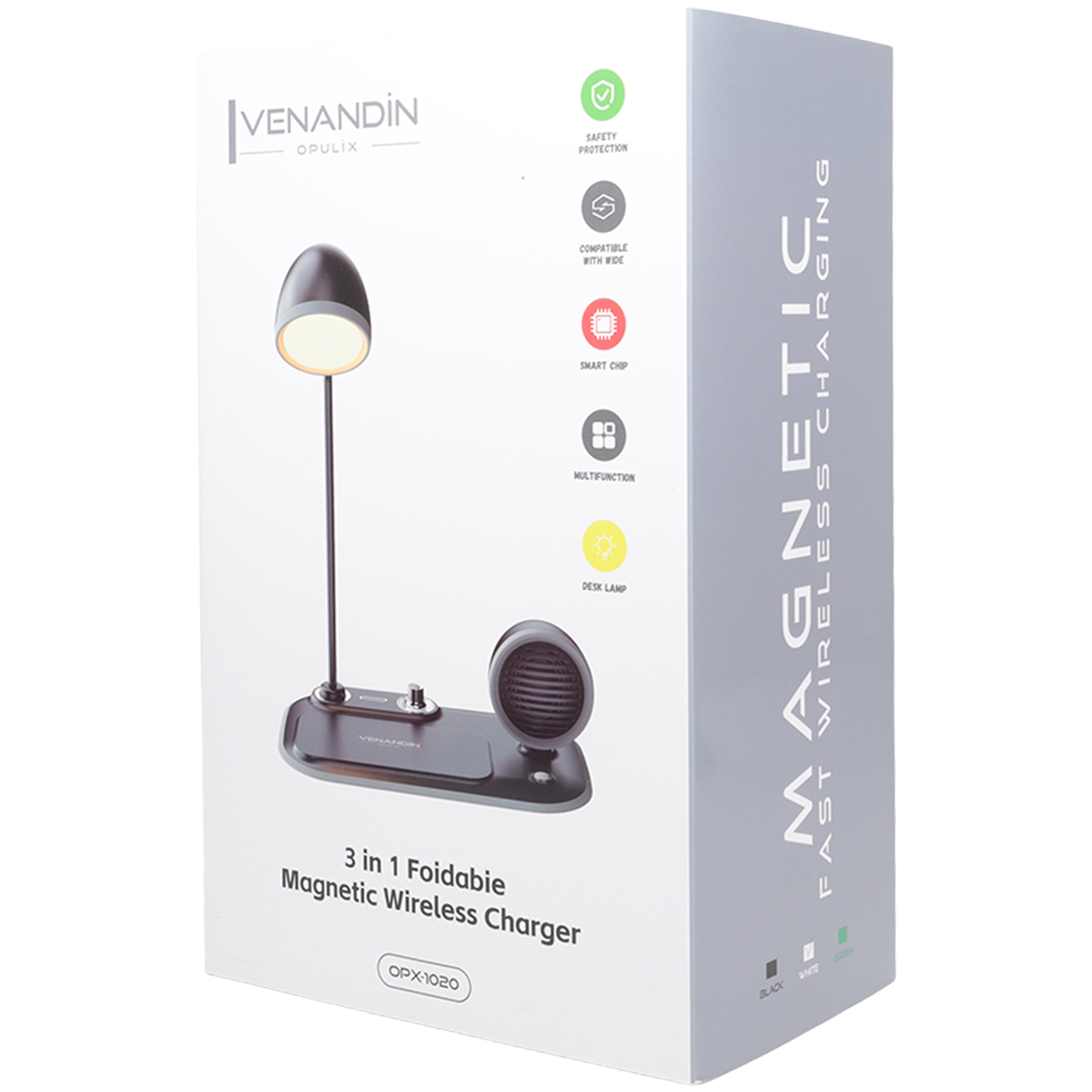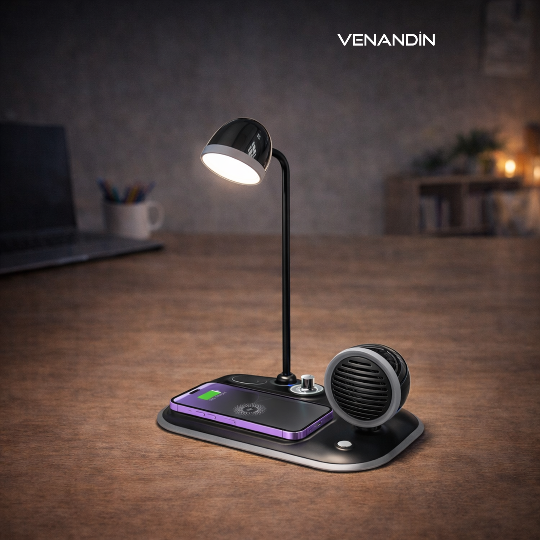 OPX-1020 VENANDİN Wireless Charge, birden fazla cihazı tek noktadan düzenli ve güvenli şekilde şarj etmek isteyen kullanıcılar için tasarlanmış fonksiyonel bir kablosuz şarj istasyonudur. Akıllı tasarımı sayesinde masaüstünde kablo karmaşasını ortadan kaldırarak daha düzenli ve estetik bir kullanım alanı oluşturur.