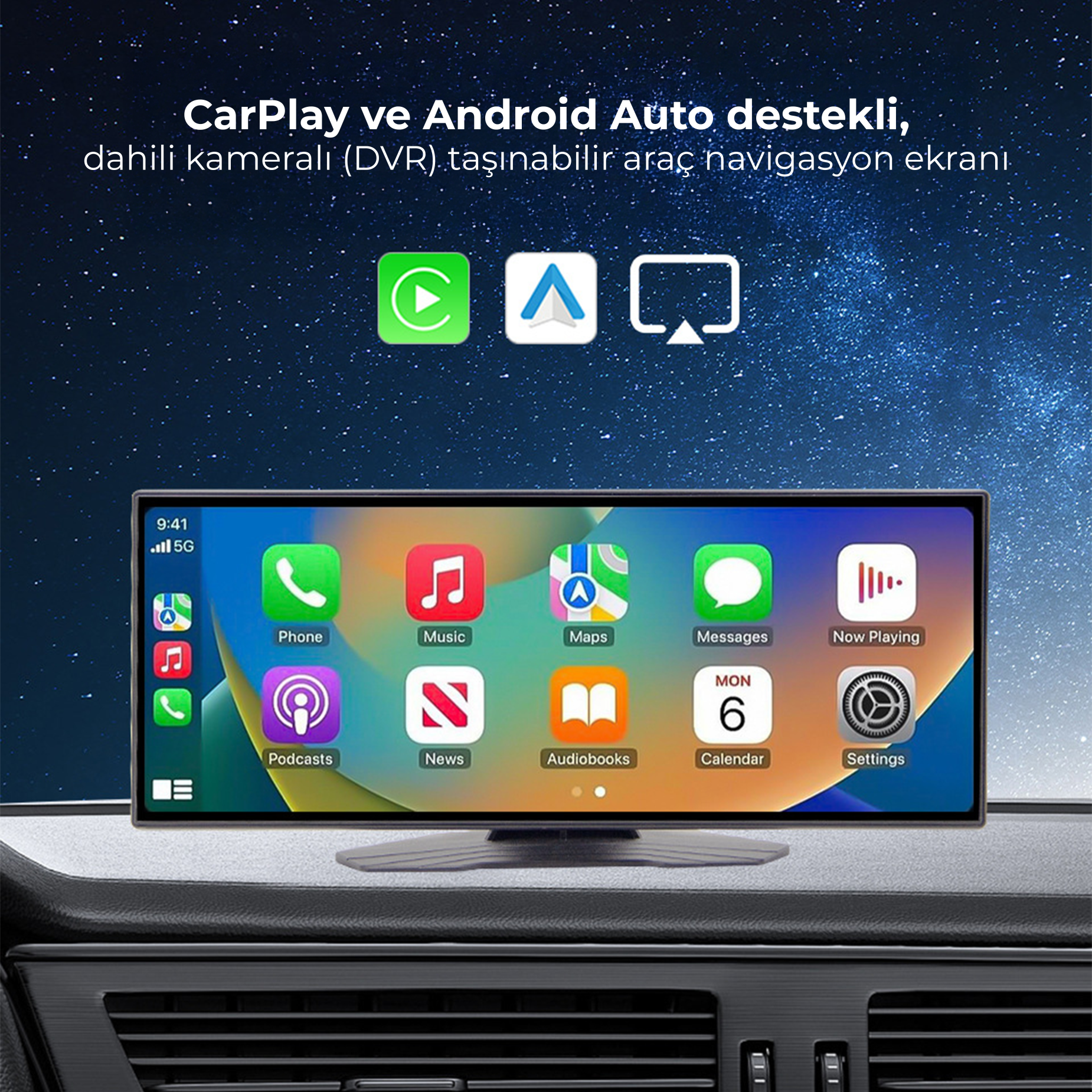 VENANDİN Navix, araç içi multimedya deneyimini modern bağlantı teknolojileriyle ileri taşıyan taşınabilir bir akıllı ekran çözümüdür. Kablosuz Apple CarPlay ve Android Auto desteği sayesinde telefonunuzdaki navigasyon, müzik ve uygulamalara sürüş sırasında kolayca erişmenizi sağlar.
