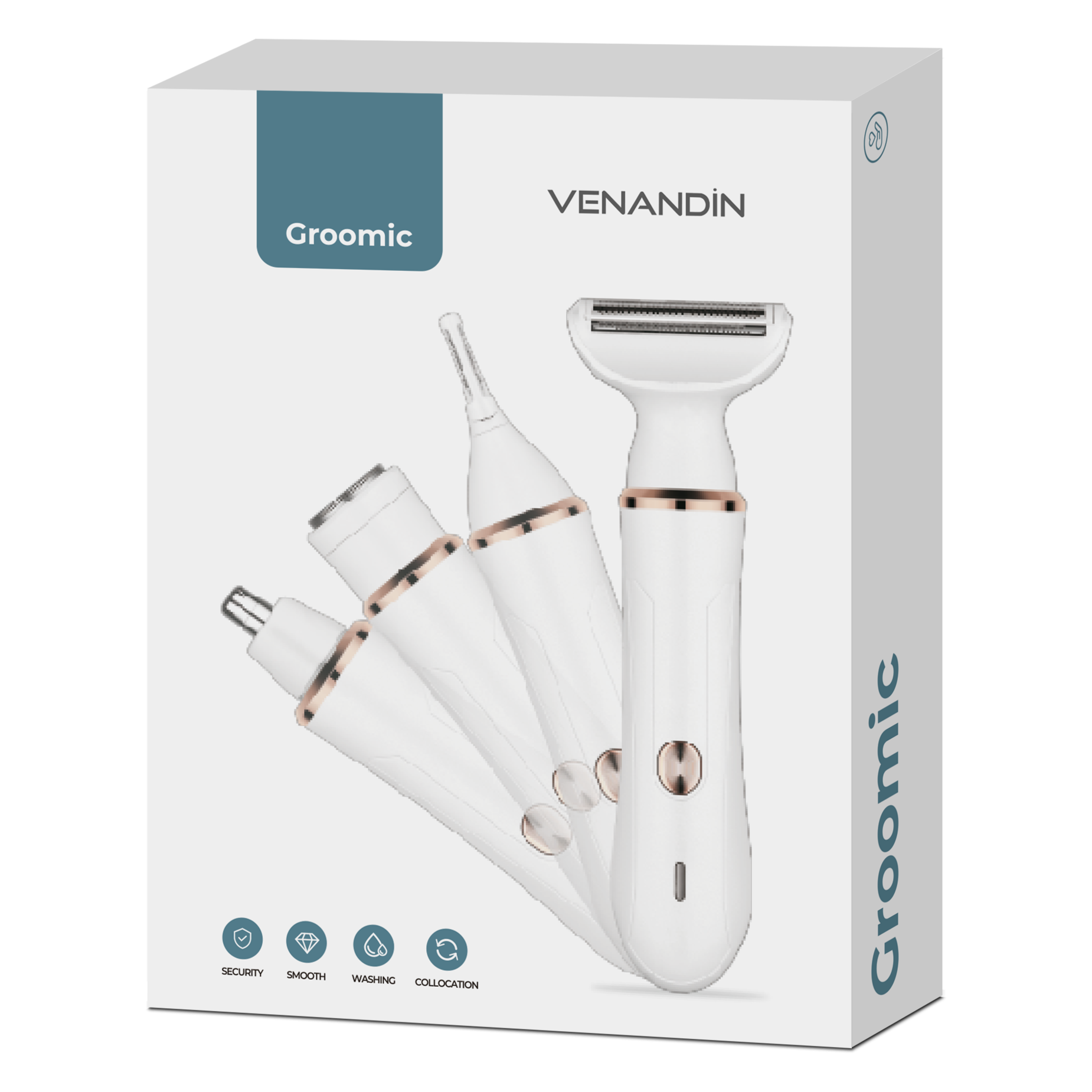 VENANDİN Groomic, tek cihazla farklı bakım ihtiyaçlarını karşılamak üzere tasarlanmış pratik bir kişisel bakım ürünüdür. Değiştirilebilir başlıkları sayesinde burun, kulak, yüz ve vücut bölgelerinde kontrollü kullanım imkânı sunar. Hafif yapısı, USB şarj desteği ve şarj göstergesi ile günlük bakım rutinlerinde kolay ve düzenli bir kullanım deneyimi sağlar.